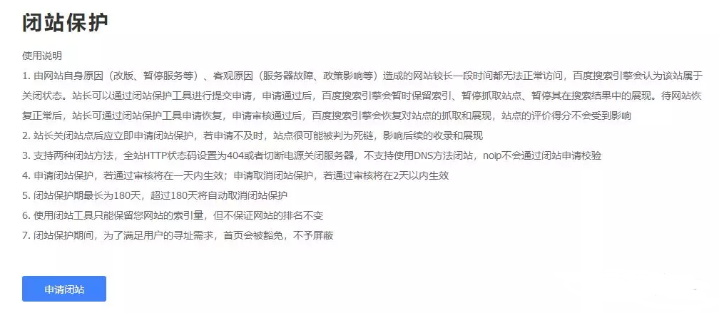 1、百度站長渠道進(jìn)行閉站維護(hù)
